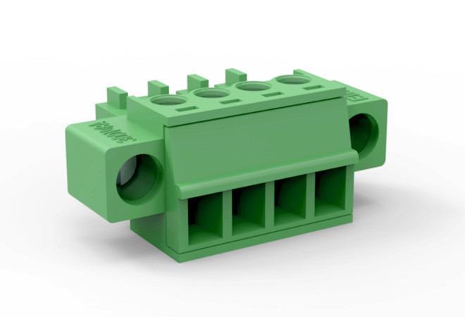 微型插拔式端子采用易于操作的可插拔连接与牢固通用的螺钉方式相结合,是各种零件连接起来。插拔式接线端子接底部机械原理,此防振动设计确保了产品长期的气密连接和成品的使用可靠性。插座两端可加装配耳,装配耳在很大程度上可以保护接片并且可以防止接片排列位置不佳,同时这种插座设计可以保证插座可以正确的插进母体。