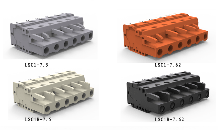 防错插的设计是为了防止多位接线端子排在一起使用时将插头与插座错位从而引起不必要的事故发生。在接线端子的型号中通常用“B”来表示,有防错插部件的插头只能与带防错插部件的插座配套使用。如与LSC1B-7.5搭配的只能是带“B”的LSZ1BR-7.5或LSZ1BV-7.5。