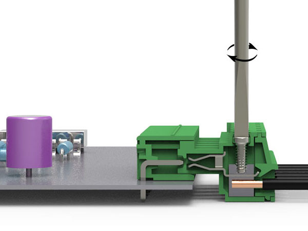印刷线路板端子还能提供多层布线接线端子。层与层之间排列紧凑,在垂直方向上错开半个针距。这种接线端子完全符合布局紧凑、节省空间的设计需求。螺钉连接方式的接线端子可与弹簧连接的接线端子兼容,这种兼容指的是两者可以不改变印刷线路板的布局。这就大大提高了产品的适应性、并很大强度上降低了材料成本。此外,用户还能根据自己需要定制接线端子——带冷压端头、预安装、特殊的外壳颜色及大批量特殊型号等,或者更改标记条样式、内容。