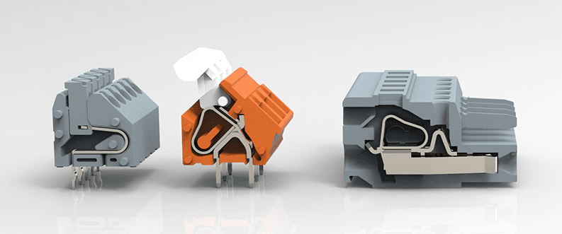 ——弹簧连接方式的印刷线路板接线端子分笼式弹簧端子和碟式弹簧端子两种,二者可以相互代替,通过弹簧作为紧固件,增强接线方式的灵活性的同时还具有减少维护次数的优势,随着元器件的发展,大电流弹簧端子不再遥远,这也是接线端子的大势所趋;