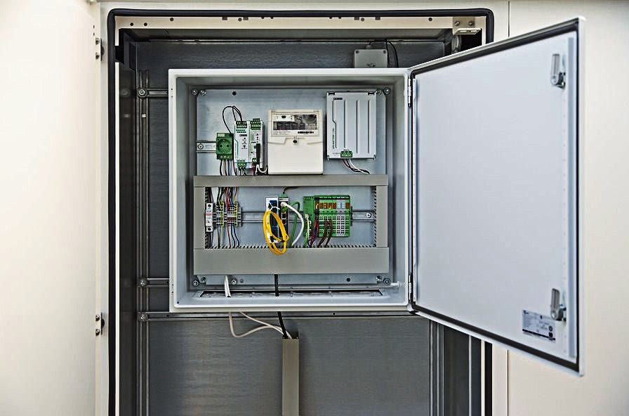 上图为新型DNO Control控制柜,其包含配合完美的软硬件组件,可在网络接入点对光伏系统发电量进行灵活控制。基于控制器的控制柜大大简化了供电管理解决方案的创建工作。该控制柜支持多种接口,具有极高的灵活性,无需额外的通信网关。