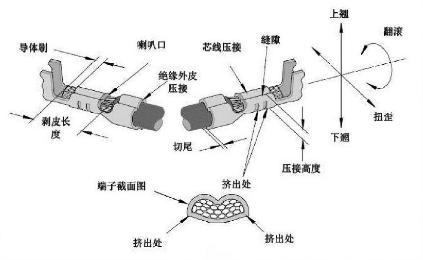 压接,是取代焊接技术的一种新兴技术,提供端子和电线之间的低成本、高品质的连接,是采用手动压接工具或自动压接工具来进行连接作业的压接系统。压接过程的三个关键要素为端子、电线和设备。