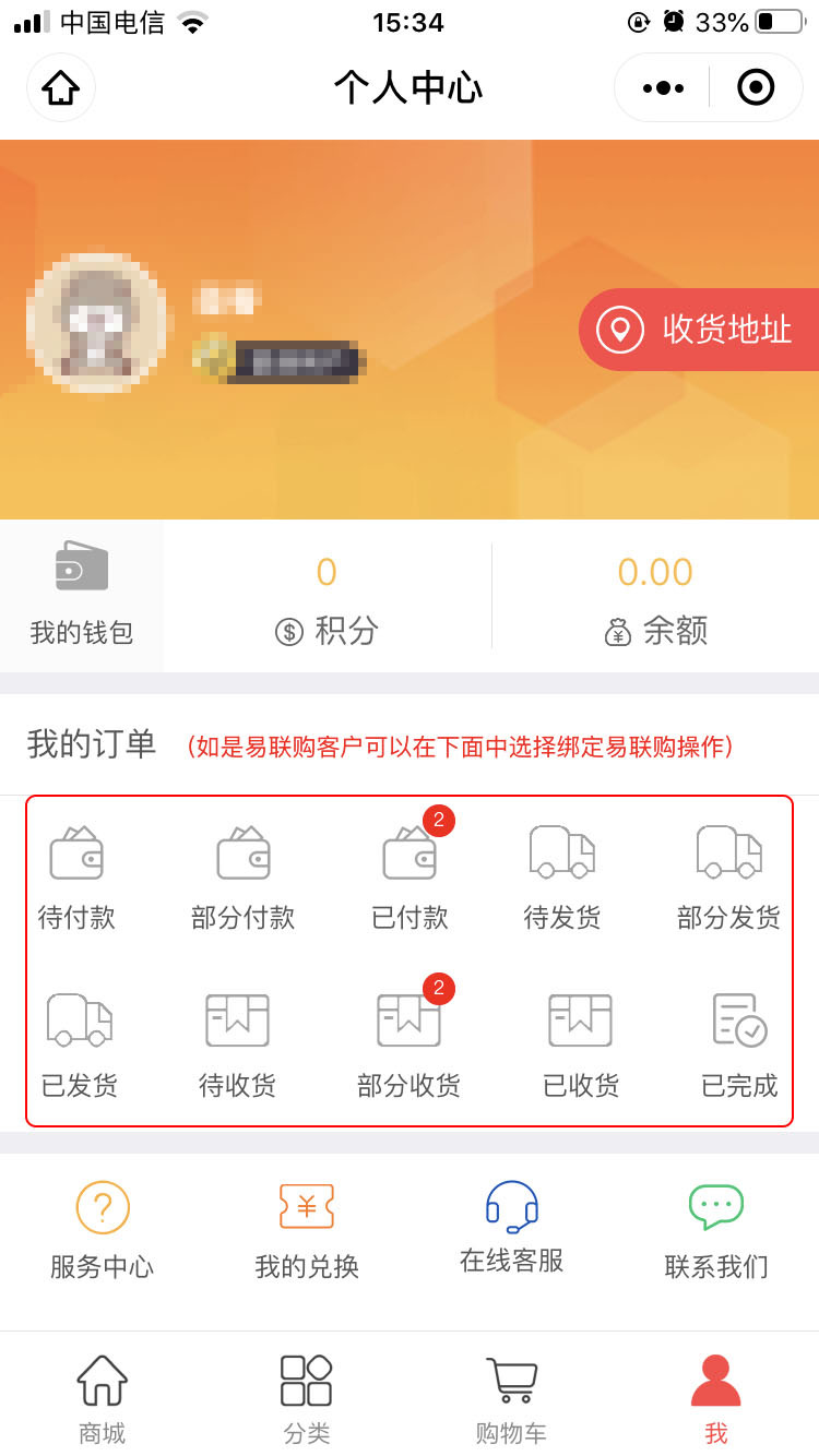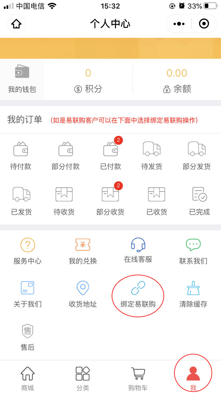 我—绑定易联购—输入易联购账户手机号—点击授权(如果第一次授权失败建议重新授权一次)
