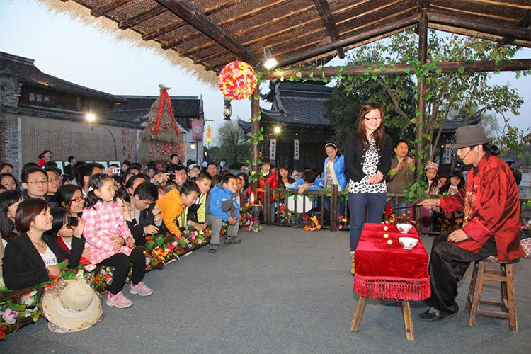 庙会的热闹吸引来四面八方的乡民,聚集了各方“能人异士”。花鼓戏、拳船表演也在这一时节先后登场,花鼓戏唱腔通透,余音绕梁,各类表演让人赞不绝口,带着地方方言的戏曲台词在带给看客视听盛宴的同时展示了属于乌镇的独特戏曲氛围。戏腔不绝于耳,戏台边叫好声接连不断,各种杂技、魔术表演让人眼花缭乱,拍案叫绝。