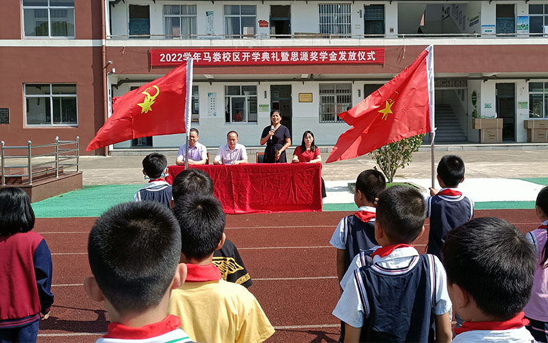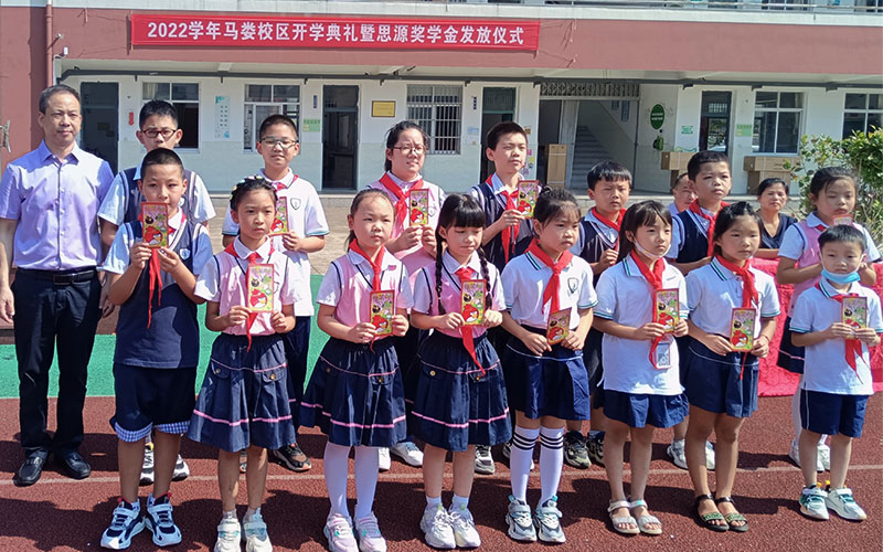 9月6日,马娄小学举行 “思源”奖学金发放仪式,15名符合条件的小学生领取了奖学金。仪式上,学校校长对奖学金发起人陈亚武表示感谢,并对获奖的同学提出希望。希望同学们要自强不息,坚定信念,增强战胜困难的勇气与信心;要刻苦学习,早日成才,用学习充实人生,用奋斗成就未来;要懂得感恩,回报社会,传递一份爱心,传递一份真情,在奉献社会中实现自己的人生价值。