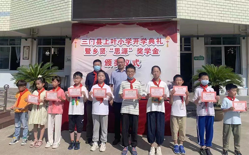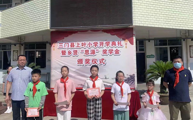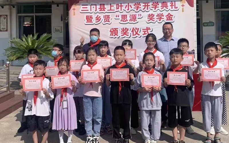 接着进入大会的颁奖环节,陈总与上叶小学校长一起为获奖学生颁奖。每个年级有一等奖1名,二等奖2名,三等奖3名,此次“思源”奖学金共有30名同学获奖。